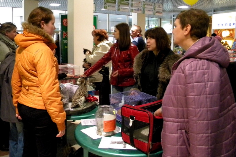 7 апреля в ТРК Слон прошла акция группы помощи где все желающие могли непосредственно помочь бездомным животным, взяв их к себе. Все животные прошли ветеринарный осмотр и были стерилизованы / кастрированы.