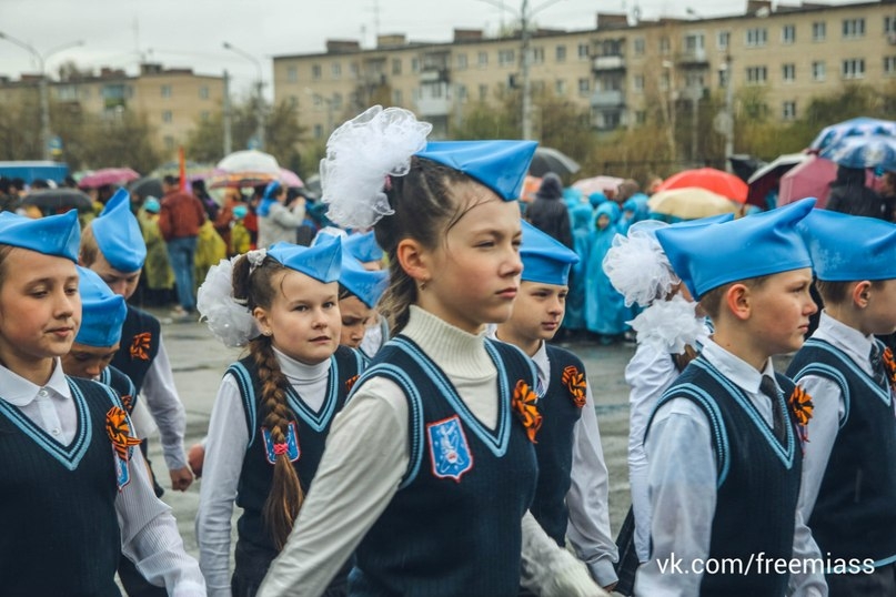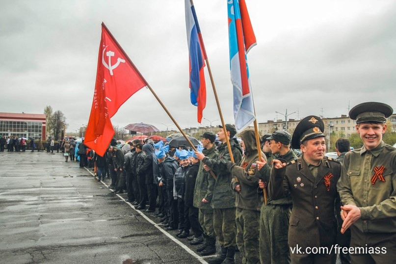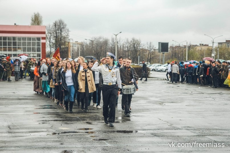 В четверг, несмотря на дождь и холод в Миассе прошел фестиваль песни и строя.