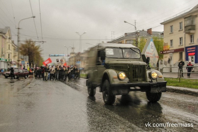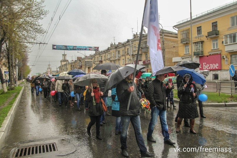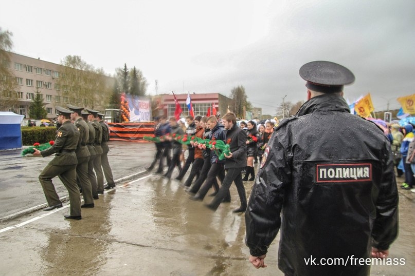 Миасцы прошлись по проспекту и возложили цветы у мемориала ВОВ. К сожалению, на этом все дальнейшие мероприятия были отменены, в том числе и салют, в связи с погодными условиями.