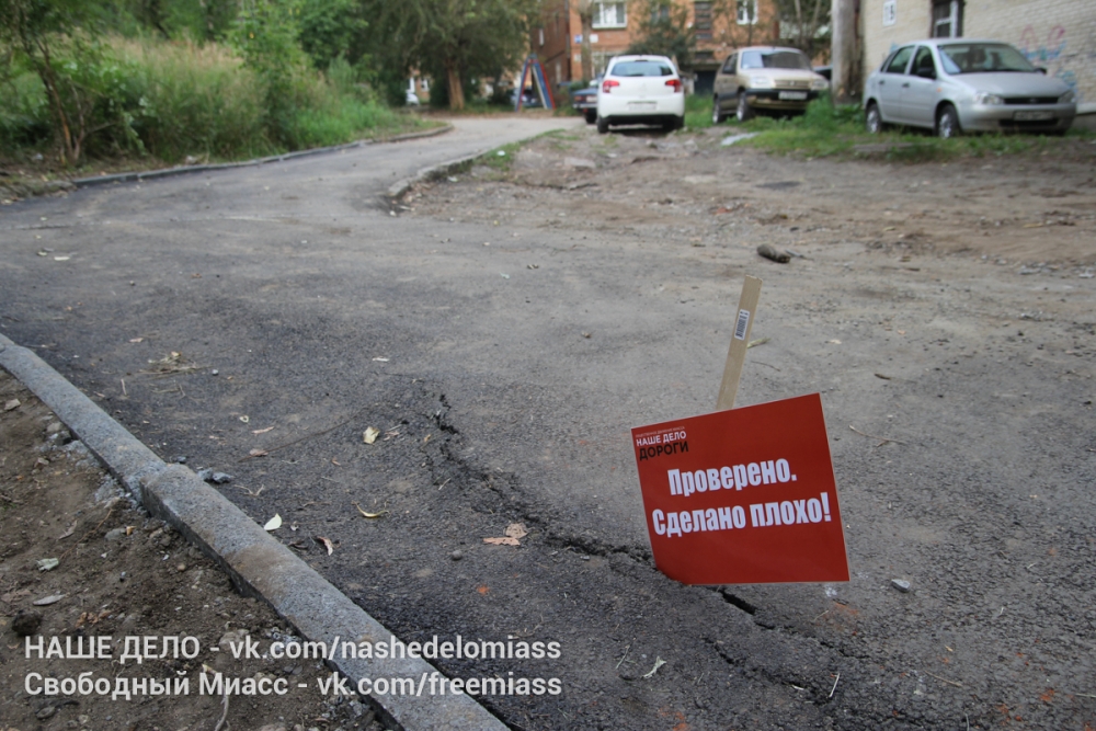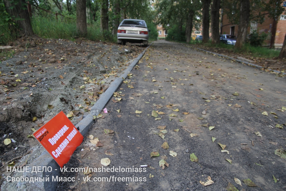 Вчера, 4 августа, активистами общественного движения "Наше дело" была проведена первая проверка работ на Округе №3 в районе домов Менделеева 17, 19, 21 (где асфальтировали тротуар) и у дома Ильмен-Тау, 15а (где делали лестницу).