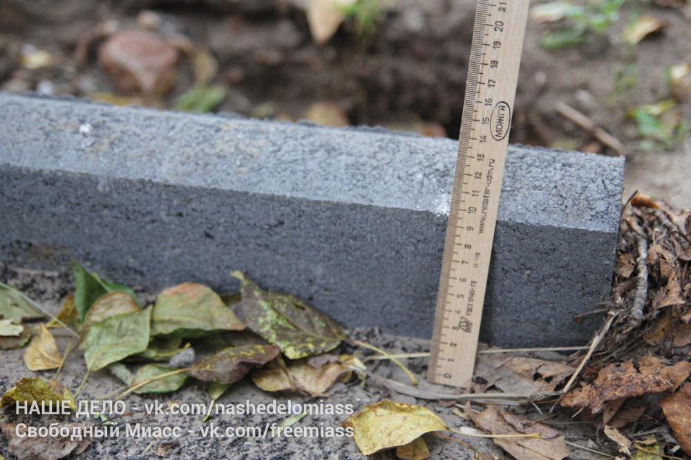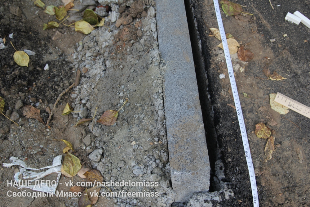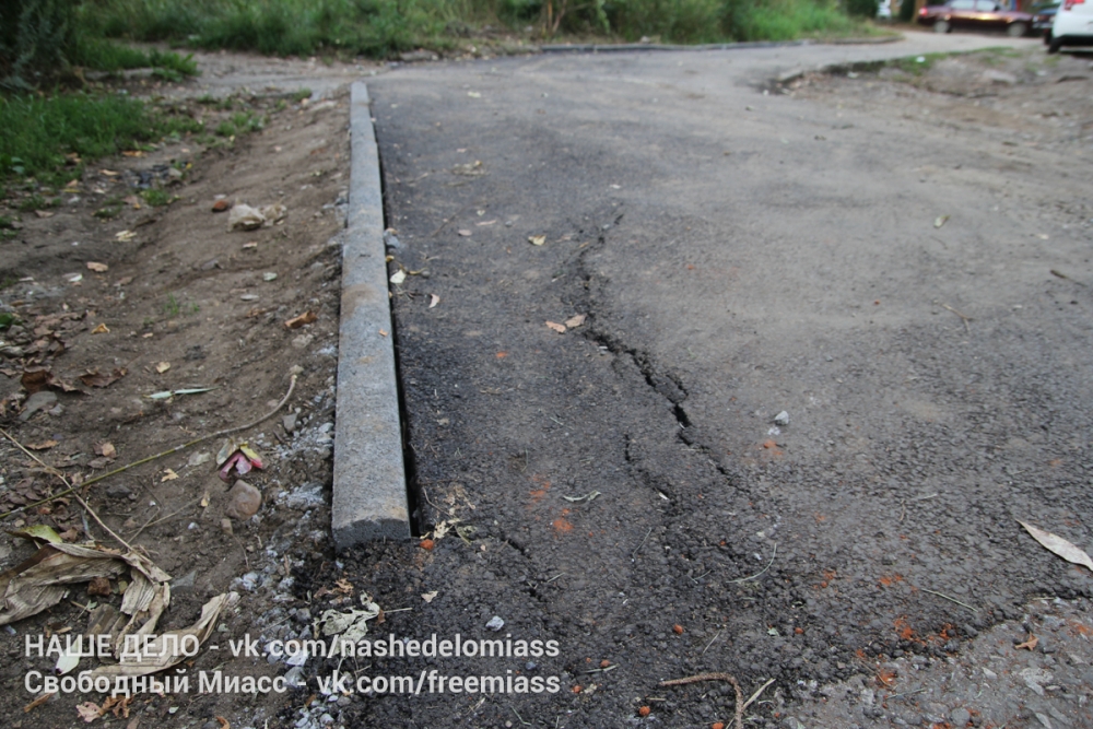— Бордюрный камень местами уже отошел от асфальта, местами сломан.