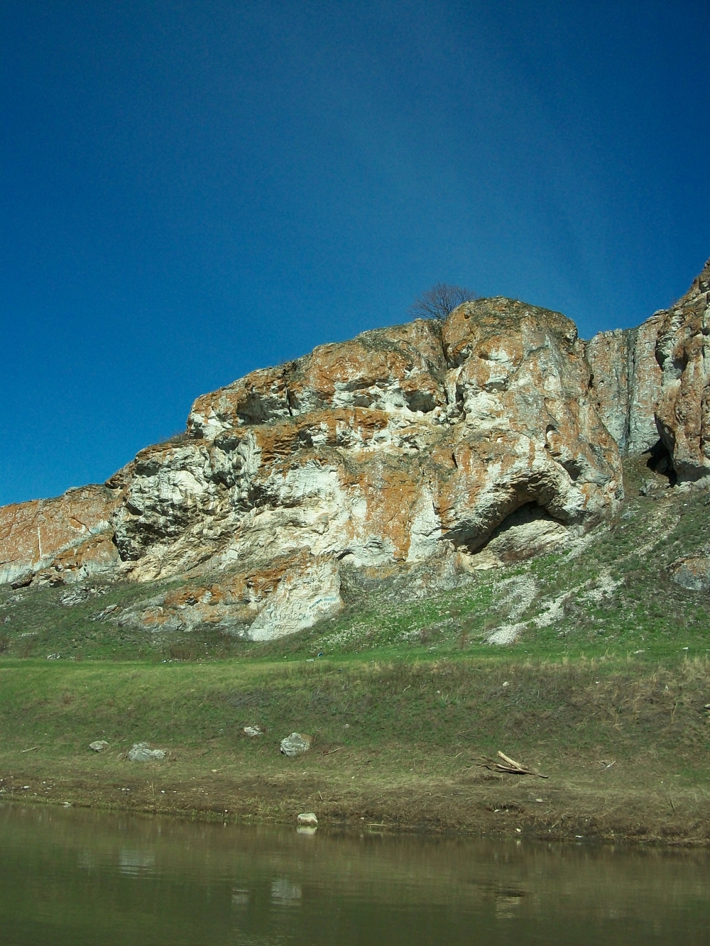 В отвесной скале на высоте 60 м над уровнем реки виден небольшой вход в пещеру «Грот Юношеский».