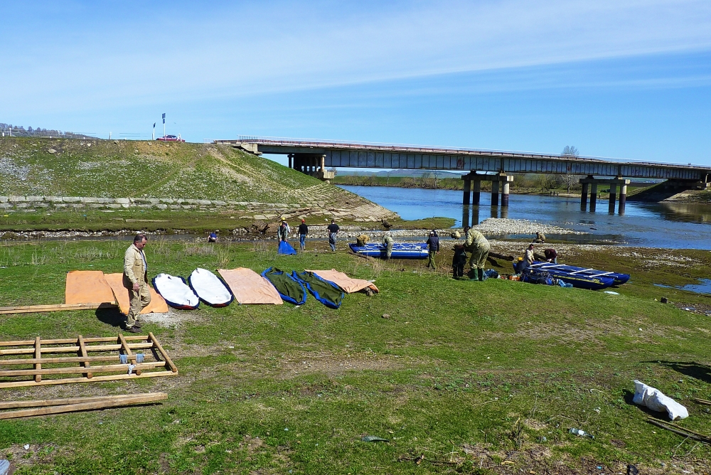 За окном мелькают перевалы и не заметно под шелест колёс мы пребываем на берег реки Ай, неподалёку от города Кусы. На берегу пока дежурные готовят первый походный обед, остальные участники путешествия собирают катамараны. И вот наши судна спущены на воду, вещи упакованы на палубе, шампанское разбивать по традиции о борт не будем, что бы не загрязнять осколками битого стекла реку, лёгкий взмах вёсел и,,, «Здравствуй, Ай!!!»